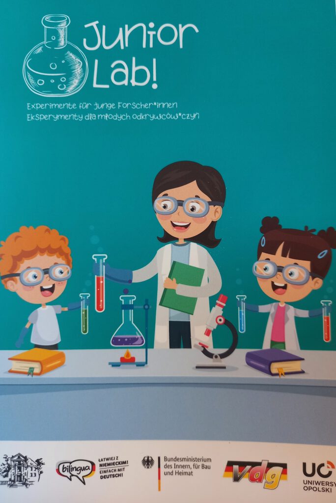 Junior Lab! – Experimente für junge Forscher*innen ist eine Broschüre für Kinder. Sie enthält eine detaillierte Beschreibung von fünf einfachen Experimenten: „Geheimnisvolle Nachricht”, „Zauberblumen”, „Badekugeln”, Regenbogen auf dem Teller” und „Kunstschnee”. Die Publikation listet die notwendigen Zutaten auf und stellt den schrittweisen Ablauf der Experimente vor. Nach jeder Beschreibung folgt eine Erklärung, warum es so geschieht, und zusätzliche Hinweise. Die Broschüre ist kostenlos bei HDPZ zu erwerben.